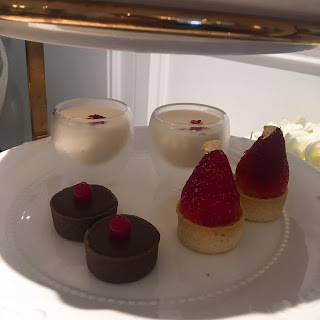 伯爵茶戚風蛋榚、歌聲院蛋榚、焦糖燉蛋、拿破崙,軟芝士草莓撻、意式奶凍、軟心慕士朱古力撻、英式鬆餅配玫瑰紅桑子 (玫瑰紅莓果醬及濃厚鮮奶油)。